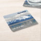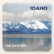 Blick nach Osten von Sandpoint, ID über den See Pend Oreille (Teich oh-ray) an einem Wintertag; schneebedeckte Berge in der Ferne. Eis hat sich am Ufer gebildet und erstreckt sich teilweise über den See. Blues und Grau sind die vorherrschenden Farben. Es erscheint auch der Text "IDAHO" mit individualisierbarem Text, und es gibt einen zusätzlichen Platz, um mehr Text hinzuzufügen.