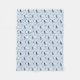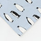 Wiederholtes Muster von schwarz-weißen Pinguinvögeln auf blassblauem Hintergrund.