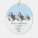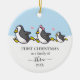 Erste Weihnachten als Familie von 3 Weihnachtsschmuck mit einer Pinguin-Illustration und Schnee im Hintergrund. Gutes Geschenk für neue Eltern in dieser Feriensaison. Doppelseitig mit dem gleichen Design.