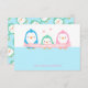 Eine Babydusche Dankeschön-Karte mit einer niedlichen und glücklichen Pinguinfamilie von drei Personen mit Ei-ähnlichen Proportionen, die auf einem Banner mit dem Aufdruck "Vielen Dank!" steht. Papa, Baby und Mami Pinguine in Blau, Grün und Rosa. Das Gegenteil ist ein Muster, das mithilfe der Babypinguine hergestellt wird, die ihre Flügel zusammenhalten. Geschlechtsneutrale Farbe für das Baby! Platz für Sie, um eine persönliche Nachricht auf jeder Grußkarte zu schreiben.