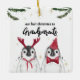 Erste Weihnachten als Großeltern Schmuck. Fantastisches Pinguin-Paar mit Weihnachtsmannmütze und Rudolph Rentierhornen. Aktualisieren Sie Ihr Foto auf der Rückseite