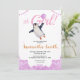 Penguin Girl Pink Baloon Cloud Sky Baby Shower Einladung