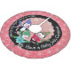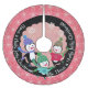 Pinguine Holly Jolly Weihnachtsbaumrock präsentiert ein schönes Design mit weißen Schneeflocken auf rosa Hintergrund, schwarzem Ring, rosa Mitte mit weißen Polka-Punkten, weiße Schneeflocken, drei bezaubernde Pinguine mit Pullover, Winterhütten, Eis-Skaten und Schals, und weißer Text, der eine Holly Jolly Weihnachten!