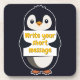 Penguin illustration holding customizable sign getränkeuntersetzer