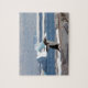 Ein Gentoo Pinguin läuft vor einem Bogen aus Eis. Das Bild wurde in der Antarktis aufgenommen. ©Angelika Stern