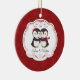 Unsere einzigartige datierte kundenspezifische Penguin-Liebe Weihnachtsverzierung kennzeichnet ein niedliches Penguinpaar-Set auf einem roten Damasthintergrund! Personifizieren Sie mit Ihren Informationen und Datum und Sie sind alles Set, zum zu gehen! Wunderbares datiertes Andenkengeschenk für ein erstes Weihnachten der Paare und ein großer Zusatz zu Ihnen Weihnachtsverzierungssammlung.