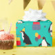 Teil der Penguin-Partysammlung, Spaß Penguins, die ein Geburtstags-Party, Türkishintergrund feiern.