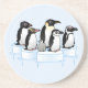 Sechs niedliche Birdorable Cartoon Penguins stehen auf einem Eis Floe in diesem ursprünglichen Entwurf, der gerade für Penguinliebhaber gemacht wird. Die Pinguine sind: Adelie-Pinguin; Gelb-mit Augen Pinguin; Kaiser-Pinguin (und Küken); Chinstrap Pinguin; und afrikanischer Pinguin.