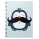 Ein niedlicher blauer chubby Penguin mit einem enormen schwarzen trendy Schnurrbart mit einem blauen Hintergrund.