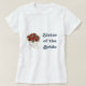 Hübscher Strauß mit rote Rosen und Text für die Damen in der Brautfamilie. Koordinaten mit Pinguin Wedding Bride. Text sagt Schwester der Braut.