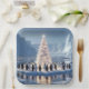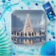 Pinguine versammeln sich auf einer schwimmenden Eisplattform um einen leuchtenden weißen Weihnachtsbaum in einer ruhigen, eisigen Landschaft