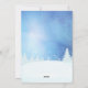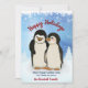Adorable Pinguin Paar auf schneebedecktem Boden mit Kiefernwald und blauem Himmel im Hintergrund. Text Kunst Typografie oben sagt Happy Holidays. Matching Card back. Anpassen von unterem Text.