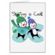 Two penguins ice skate on the frozen pond dressed in striped, colorful winter hats, scarves, and mittens and black text reads Skating is Cool on skating theme T-shirts, mugs, cards, bags, keepsakes, pillows, hoodies, stickers, and much more!