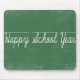 Happy School Year Kursivschrift auf einer grünen Tafel.
