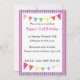 Rosa Streifen und Pennants - eine fabelhafte Geburtstagsfeier. Ideal für ein Party zum Thema "Strand" oder "Kinderzirkus". Vollständig anpassbar mit Ihren Party-Details - fügen Sie einfach den Text hinzu, um jedem zu sagen wann und wo er sein soll!