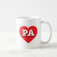 Diese Tasse weist ein lebendiges rotes Herz auf, das die fett-, weiß-, Großbuchstaben PA, die offizielle Abkürzung für Pennsylvania, den wichtigsten Staat, enthält.