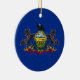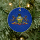 Dieses Design ist die Staatsflagge von Pennsylvania, offiziell bekannt als das Commonwealth von Pennsylvania. Die Fahne wurde erstmals 1778 adoptiert und enthält das Wappen von Pennsylvania, einem offiziellen Emblem des Staat. Das Motto des Staat wird auch angezeigt: "Tugend, Freiheit und Unabhängigkeit". Auf dem Wappen steht ein Glatzenadler, der Pennsylvaniens Loyalität gegenüber den Staaten repräsentieren soll. Pennsylvania ist tatsächlich einer der 13 ursprünglichen Staaten der Gewerkschaft. Die beiden bevölkerungsreichsten Städte im Staat von Pennsylvania sind Philadelphia und Pittsburgh. Die Hauptstadt des Staat ist Harrisburg.