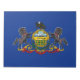 Dieses Design ist die Staatsflagge von Pennsylvania, offiziell bekannt als das Commonwealth von Pennsylvania. Die Fahne wurde erstmals 1778 adoptiert und enthält das Wappen von Pennsylvania, einem offiziellen Emblem des Staat. Das Motto des Staat wird auch angezeigt: "Tugend, Freiheit und Unabhängigkeit". Auf dem Wappen steht ein Glatzenadler, der Pennsylvaniens Loyalität gegenüber den Staaten repräsentieren soll. Pennsylvania ist tatsächlich einer der 13 ursprünglichen Staaten der Gewerkschaft. Die beiden bevölkerungsreichsten Städte im Staat von Pennsylvania sind Philadelphia und Pittsburgh. Die Hauptstadt des Staat ist Harrisburg.