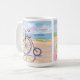 Penny farthing bike parkt am strand kaffeetasse
