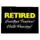 Zurückgezogen: Auf Wiedersehen Spannungs-hallo Pension! Geistreiches und lustiges Ruhestands-Sprichwort/Zitat für jedermann, das sich zurückzieht. Der schwarze Hintergrund kann geändert werden, um zu jeder möglicher Farbe zu ändern, die Sie wollen.