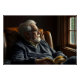 Fotorealistisches Porträt eines älteren Mannes mit weißem Haar und Bart, Brille tragen, allein sitzend in einem tiefbraunen Ledersessel. Er blickt aus einem nahegelegenen Fenster, das durch sanftes natürliches Licht erhellt wird, mit in der Luft sichtbaren Staubmotten. Der gemütliche, traditionelle Saal ist hell und bietet eine ruhige, kontemplative und melancholische Atmosphäre. Ein geschlossenes Buch Erholungen in der Nähe, das Einsamkeit und reflektierende Stille betont. Im Mittelpunkt steht sein nachdenklicher Ausdruck und die ruhige Leere um ihn herum.