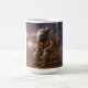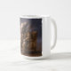 Dramatic art mug featuring an anthropomorphic elephant in a brown leather suit sitting deeply in an antique velvet armchair.