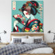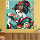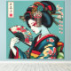 Diese faszinierende Leinwand erweckt einen gedankenvollen Geisha mit einem zarten Fan, der im traditionellen Ukiyo-e-Malstil wiedergegeben wird. Ideal für Bewunderer der japanischen Kultur und Geschichtskunst, bringt es eine Touch von Eleganz und Kontemplation in jeden Raum.