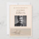 Hier ist eine elegante und einfache Einladung für einen Begräbnisservice, der an einem Friedhof abgehalten wird. Im Vorfeld der Einladung, ist die Information der wichtigen Person, die Sie gedenken. Im Hintergrund der Einladung ist der Zeitpunkt und Ort, wo die Beerdigung stattfinden wird. Das Bild zeigt zwei Möwen, die in den Ozean starren. Sie können beide Seiten dieser Einladung personalisieren. Sie können das Foto Ihres Geliebten auf der Vorderseite dieser Einladung einschließen.