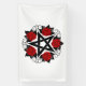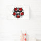 Schwarzes Pentagramm mit Muster, mit Blüte dekoriert, rote Rosen mit Blätter auf weißem Hintergrund. Tattoo-Stil.