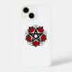 Schwarzes Pentagramm mit Muster, mit Blüte dekoriert, rote Rosen mit Blätter auf weißem Hintergrund. Tattoo-Stil.