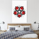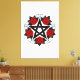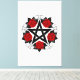 Schwarzes Pentagramm mit Muster, mit Blüte dekoriert, rote Rosen mit Blätter auf weißem Hintergrund. Tattoo-Stil.