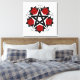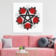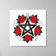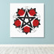 Schwarzes Pentagramm mit Muster, mit Blüte dekoriert, rote Rosen mit Blätter auf weißem Hintergrund. Tattoo-Stil.