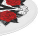 Schwarzes Pentagramm mit Muster, mit Blüte dekoriert, rote Rosen mit Blätter auf weißem Hintergrund. Tattoo-Stil.