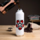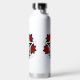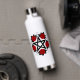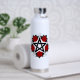Schwarzes Pentagramm mit Muster, mit Blüte dekoriert, rote Rosen mit Blätter auf weißem Hintergrund. Tattoo-Stil.