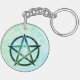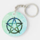 Buntes Pentagramm mit blauem und grünem pastellfarbenem Hintergrund.