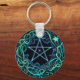 Dieser skurrile Schlüsselanhänger zeichnet sich durch einen lebendigen Aquarelldruck eines Pentagramms aus, umgeben von einem kosmischen Sternenhimmel.