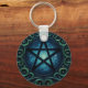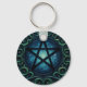 Dieser skurrile Schlüsselanhänger ist mit einem schwarzen Pentagramm umgeben von grünlich blauen kosmischen Himmeln, die als Ölfarbe gedruckt wurden.