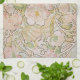 Ein Küchentuch mit den kunstvollen Aquarellen von der tschechischen Künstlerin Alphonse Mucha (1860-1939). Ein dekoratives Muster mit rosa Pfannenbäumen.