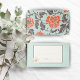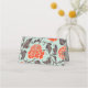 Eine zarte beige Pony umrahmt die Platzkarte mit orange-rosa Pionierchinoiserie auf der Rückseite der Karte für diese besondere Touch.