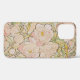 Ein iPhone Case 12 mit einer Aquarellfarbe von Alphonse Mucha (1860-1939), genannt Peonies (1890). Rosa pastellfarbene Blume auf abstraktem Hintergrund.