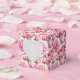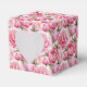 Gastgeschenk Box wird mit einem schönen rosafarbenen Tornoptik Blumendruck gezeigt. Passen Sie dieses Objekt an oder kaufen Sie, wie es ist. Tipp: Fügen Sie einfach Ihre großen Leckereien hinzu und fügen Sie ein festliches Band hinzu. Lizenziertes Bild