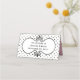 Hübsche gefaltete Platzkarte in einem schwarz-weißen kleinen Polka-Dotmuster, mit einem Vintagen schwarzen gerahmten Textbereich, der mit einem hübschen Bouquet aus rosafarbenen Pfannkuchen verziert ist. Personalisieren Sie den benutzerdefinierten Text auf der Kartenrückseite, um zu lesen, was Sie gewollt haben. Personalisieren Sie die Vorderseite jeder Karte, von Hand, für Ihre Hochzeit Empfang.