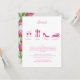 Peonies koordinieren Details Karte lackiert und detailliert. Garten, botanisch, Naturdruck. Details Karte mit Weinbrillen Toasting, Silbergeschirr zum Abendessen, Tanzschuh und altmodisches Auto für gute Nächte!