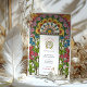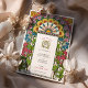 Diese atemberaubende Jugendstil-Einladung "Save the Date" besticht durch ein verziertes Blumendesign aus lebhaften rosa Pfannkuchen, zarten gelben Rosen und auffallenden blauen Schläuchen. Ein aufwändiger Bogen mit bunten Blüten, goldenen Details und einem strahlenden Sonnenburstmotiv bereichert die Vintage Ästhetik. Grüne Blätter, detaillierte Linien und symmetrische Muster spiegeln die Eleganz des Jugendstils wider. Ideal für Paare, die eine romantische, naturlich inspirierte und Vintage Hochzeitsankündigung suchen, kombiniert dieses Design botanische Schönheit mit zeitloser Eleganz.