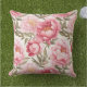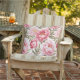 Dieses Akzent-Kissen im Freien wird in einem hübschen rosa Blume-Druck gezeigt. Passen Sie dieses Objekt an oder kaufen Sie, wie es ist. Lizenziertes Bild