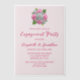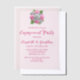 Hochzeitsfeiern mit rosafarbenem Torf und Blumenstrauß. Klassische, rosa und weiße Pfannkuchen mit traditionellem Babyatmen und botanischer Vegetation