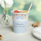 Erleben Sie Ihr Peony Blue Hydrangea Brautparty mit diesen wunderschön gestalteten personalisierten Papiertassen, die Ihnen eine Touch Eleganz verleihen. Diese Tassen mit einer romantischen Anordnung von weich blauen und weißen Hydrangeas gepaart mit staubigen rosa und weißen Pfannkuchen strahlen femininen Charme und Eleganz aus. Das zarte Blumendesign ist ein Set vor einem eleganten, staubigen, blauen Hintergrund, mit einer faszinierenden weißen Spitze, die ein zeitloses, romantisches Ambiente schafft. Inspiriert durch die ikonische Dekoration und die Mode der Nancy Meyers Filme, sind diese Papiertassen aus Blumenblättern ideal, um eine warme und einladende Atmosphäre zu schaffen. Egal ob Sie erfrischende Getränke servieren oder eine dekorative Touch in Ihre Tischumgebung einfügen, diese Tassen passen perfekt zum Stil und machen sie zu einer unverzichtbaren Ergänzung Ihrer Feier. Ideal für Brautpaare, die romantische, feminine Designs und zeitlose Eleganz lieben.