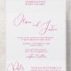 Das Peony Elegance All in einer Einladung zur Hochzeit besticht durch eine kühne und trendige heiße rosa-weiße Palette mit raffinierten Fußbädern, die eine beeindruckende und dennoch elegante Gestaltung schaffen. Die Kombination dieser Farben verleiht dem Ganzen ein Gefühl von Verspieltheit, Freude und tropischer Atmosphäre und schafft so die Bühne für ein unvergessliches und lebendiges Fest. Diese Einladung ist perfekt für Paare, die den Geist des Sommers auf eine lustige und lebendige Art und Weise gewollt haben. Minimalistisch und raffiniert, verkörpert diese Einladung schicke Eleganz mit einem künstlerischen Flair. Ideal für ein modernes, gehobenes Fest.