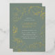 Die eleganten Brautparty mit Blumen-Pony-Brause-Einladungen sind ideal zum Springen oder Gartengärten geeignet und bieten einen Rahmen für die Kontur von Goldfolie-Pony-Blume. Ihre Veranstaltungsdetails finden Sie in klassischer Schrift auf einem staubigen, grünen Hintergrund. Personalisieren Sie diese klassisch eleganten Brautduschen-Einladungen mit dem Namen, dem Datum und der Uhrzeit, dem Ort und der Adresse, der UAWG und den Registrierungsinformationen der Braut.