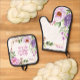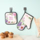 Peony Hebrew Shabbat Oven Mitt + Pot Holder Set